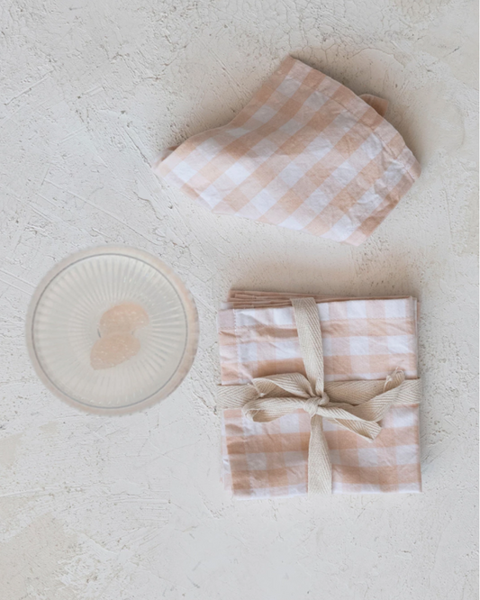 Cotton Cocktail Napkins w/ Gingham Pattern (Set of 4)